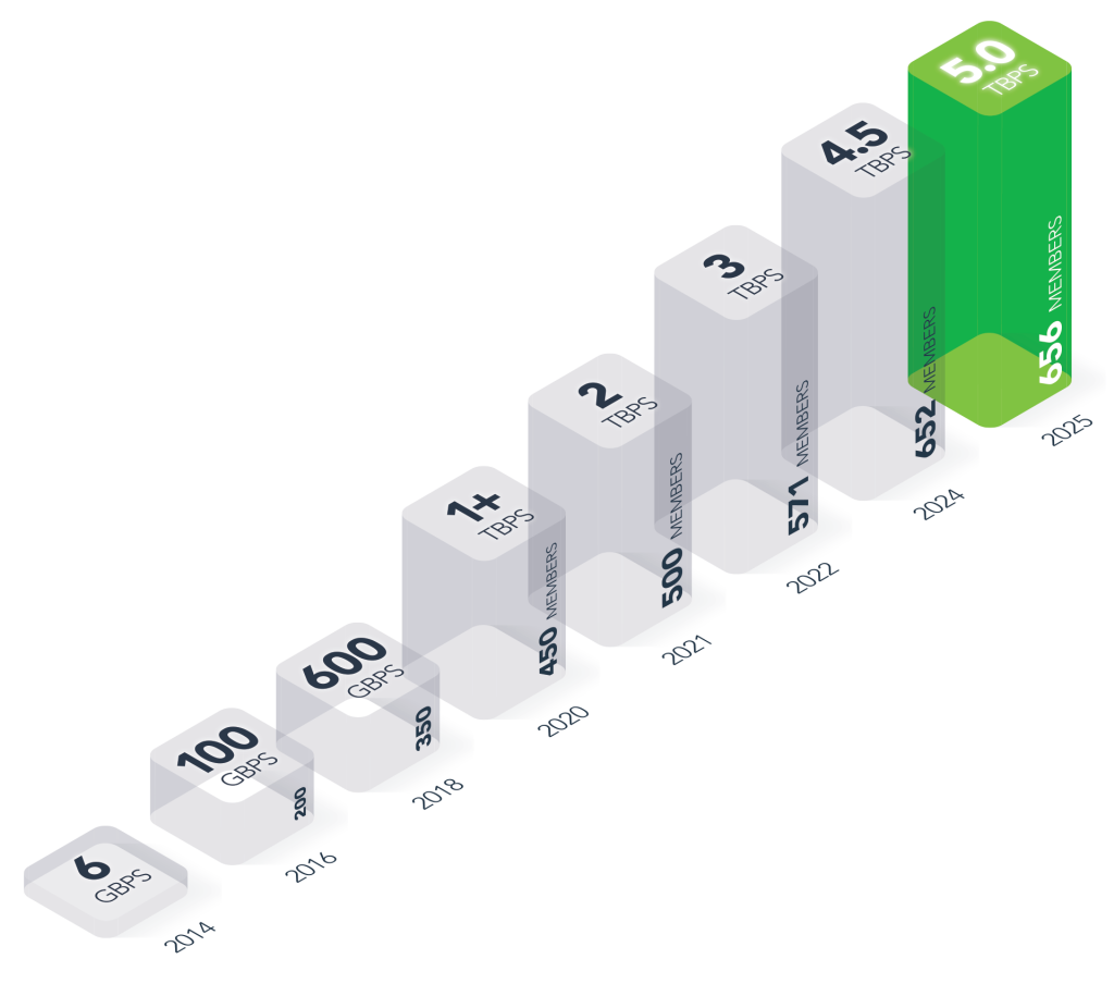 February 2025: Traffic reached 5Tbps.